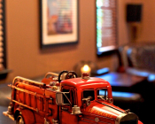 The Client wished to add personality, style, and finishing touches to the living and dining areas of his town home. Accessories, artwork, and photographs featuring a variety of cars, trucks, and motorcycles unite the space and reflect his love for vehicles of all types. The transportation theme, while subtle, gives the space a refined masculinity and distinct character.